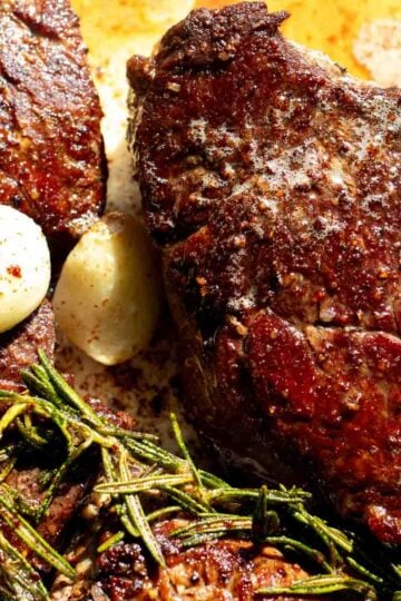 This is a great recipe that works beautifully for special occasions like galentine's day, a holiday dinner or a cozy steak night at home. Be sure to serve with my compound steak butter recipe for even more flavor! Whether you're serving it with classic side dishes or keeping things simple, this method delivers a juicy, tender steak every time without issue!